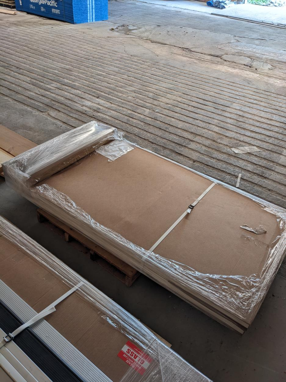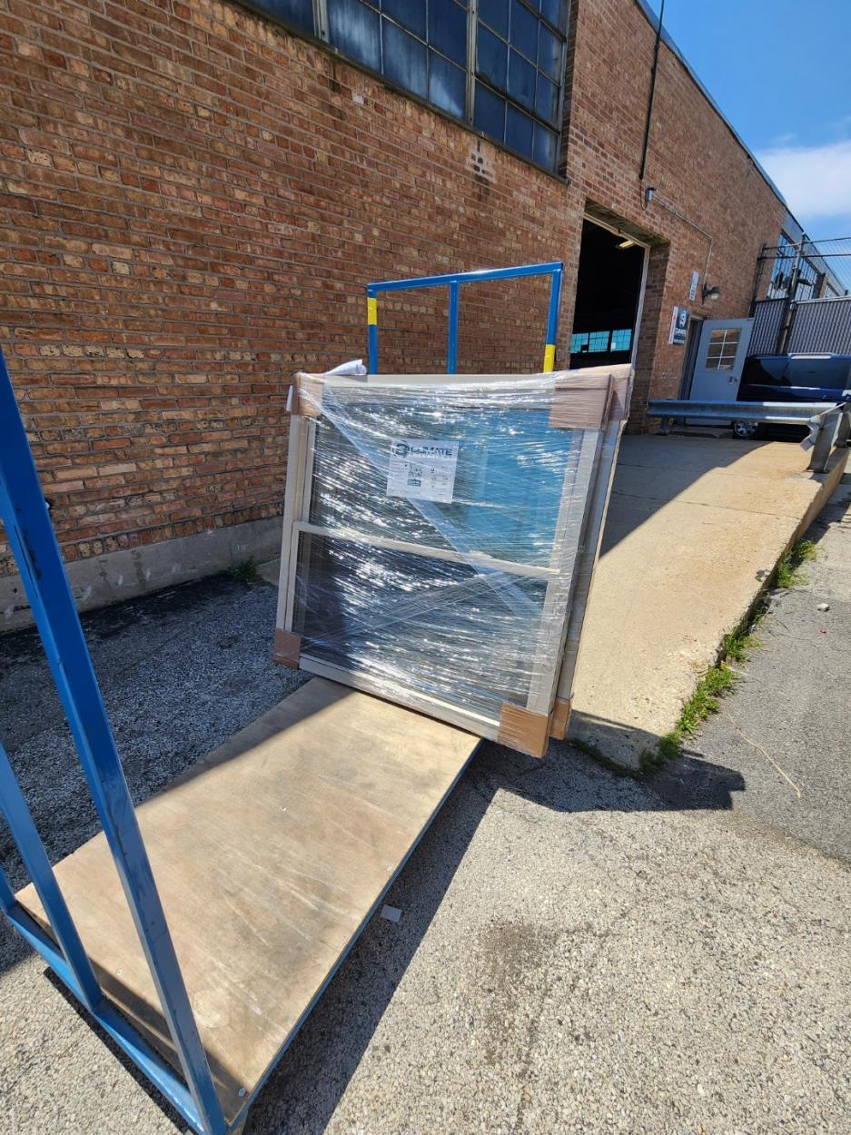 2 vinyl windows; each weigh 45-50 lbs. They can be stacked on top of each other but best way is to slide them in the back of a truck or suv. More awkward just because of being 4ft wide and high than anything.