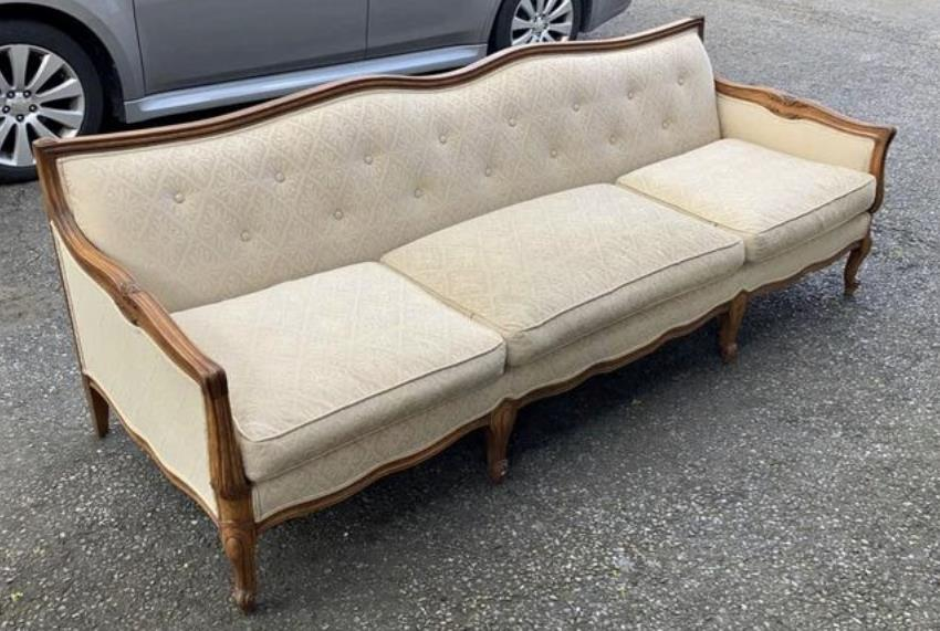 *Please note the couch is white in the pictures, but was recently reupholstered in green fabric. The last picture is a swatch of the new fabric, for color reference.