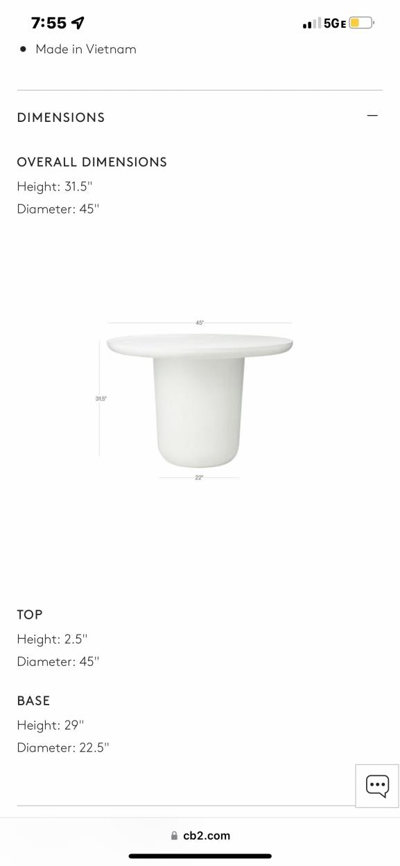 Dimensions are 44”diameter and 31.5 height. Table can be taken apart to be 2 parts.