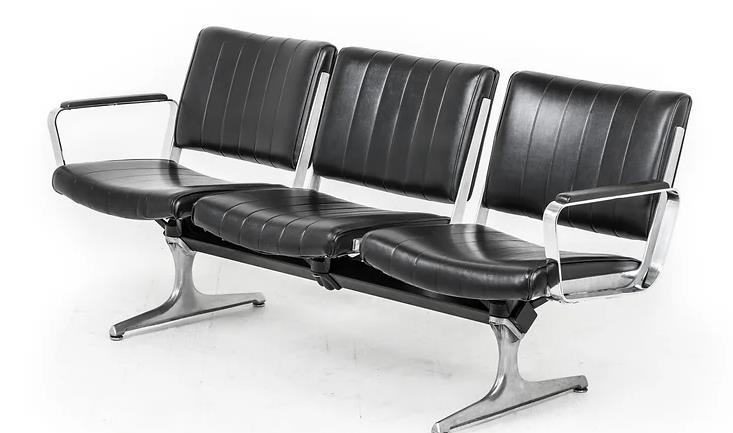 3 total airport benches. Must not have items pressed against or stacked on top.