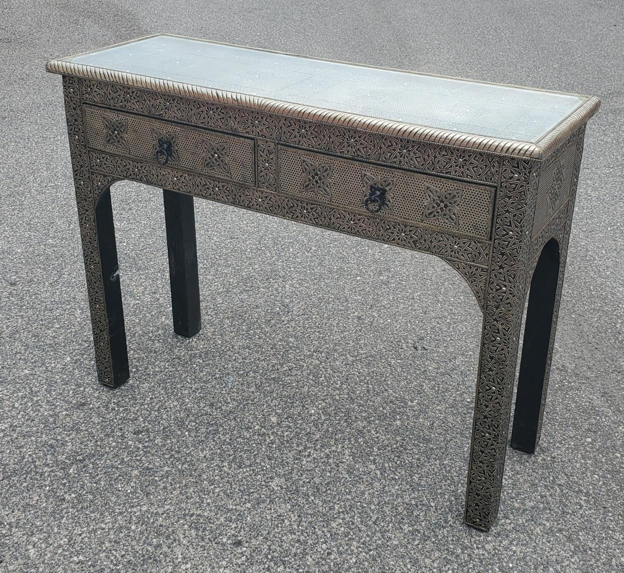 Glass top, heavy base.