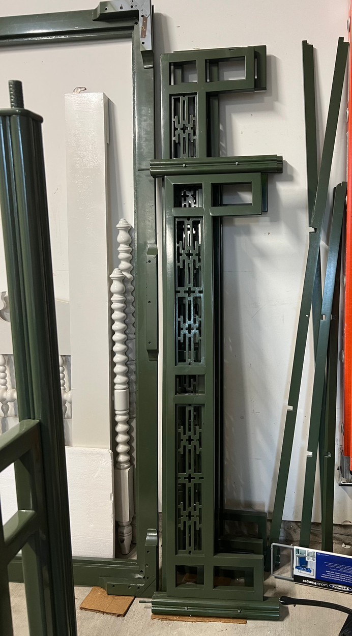 Headboard, footboard, side rails and 2 decorative panels for the canopy
