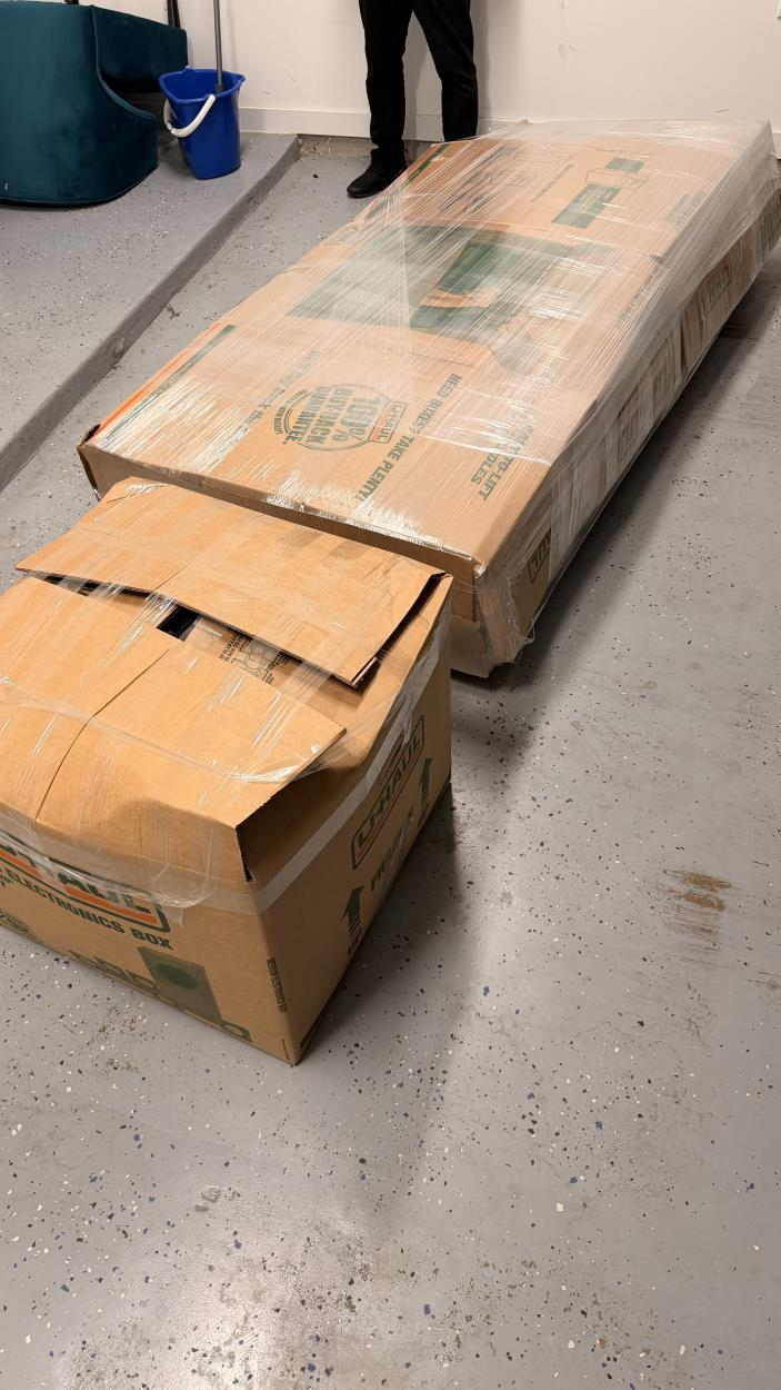 Blanket wrap, front of kiosk is screen, so needs to be protected.
