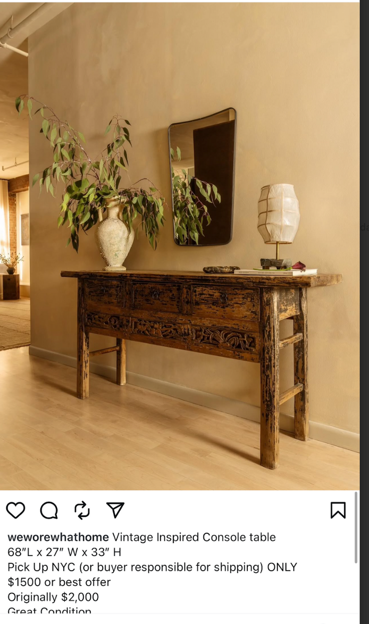 It is a vintage distressed/antique console table. You will be picking it up in NY and taking it to LA. The NY location you can use an elevator.