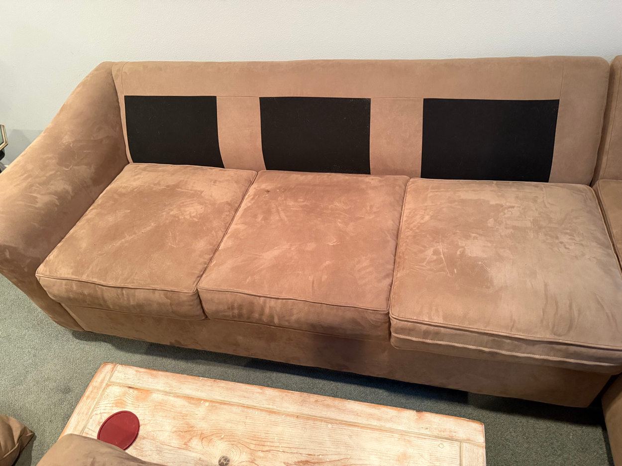 Hello, I need the brown sectional (photos of each of the 2 pieces are shown) and blue chair w/ reclining footrest moved from my step father's home. 1st piece of sectional is 37"deep x 75"wide x 29"tall and second is 37" deep x 84" wide x 29" tall. Put together it is 75" + 37" =112” x 84" which is what was reported. Both are in great condition and they were my mom's who passed away... my kids want them so I am trying to have them moved to my home for now. Very flexible on timing ... could even more sometime in January 2026 after 1/18/26 if that is better. Please note the following .. 1) the weight is estimated, I got that off internet (average for type of furniture) and 2) my step father is older and the mover will need to get the brown sectional from the basement. The blue chair is on 1st floor. Happy to answer questions. Thank you for considering.