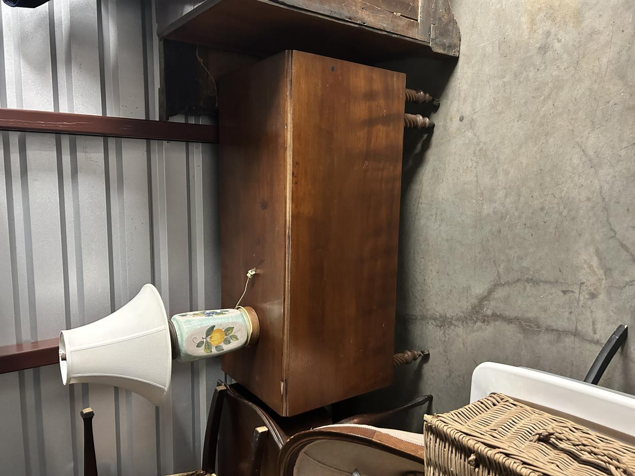 The two tables are both drop leaf tables. All wood. What I’ve called a dresser is really an old wooden dressing table - drawer in the middle and two cabinets on each side. Space in the middle for a chair.