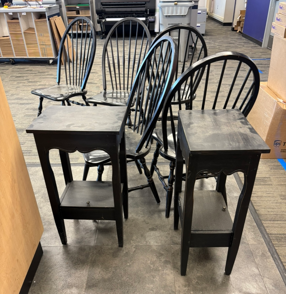 PLEASE READ. There are actually 8 office chairs, 8 cafe chairs, and 2 bistro table. Not 10 items. Please look at the photos for what you will be moving. The plastic chairs and tables can be dissasmbled if needed but all hardware will have to be delivered with them. Looking to have everything blanket wrapped. Pick up available during the posted dates Monday-saturday 9 am-4 pm