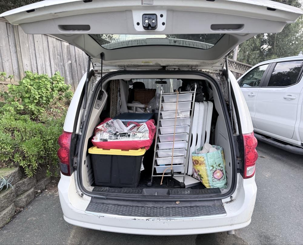 I need to transport the supplies, merchandise, displays and fixtures for my mobile accessories business. All of it basically fills the back part of a minivan with the seats taken out of it. There are a few extra boxes in addition to the itemized list below.