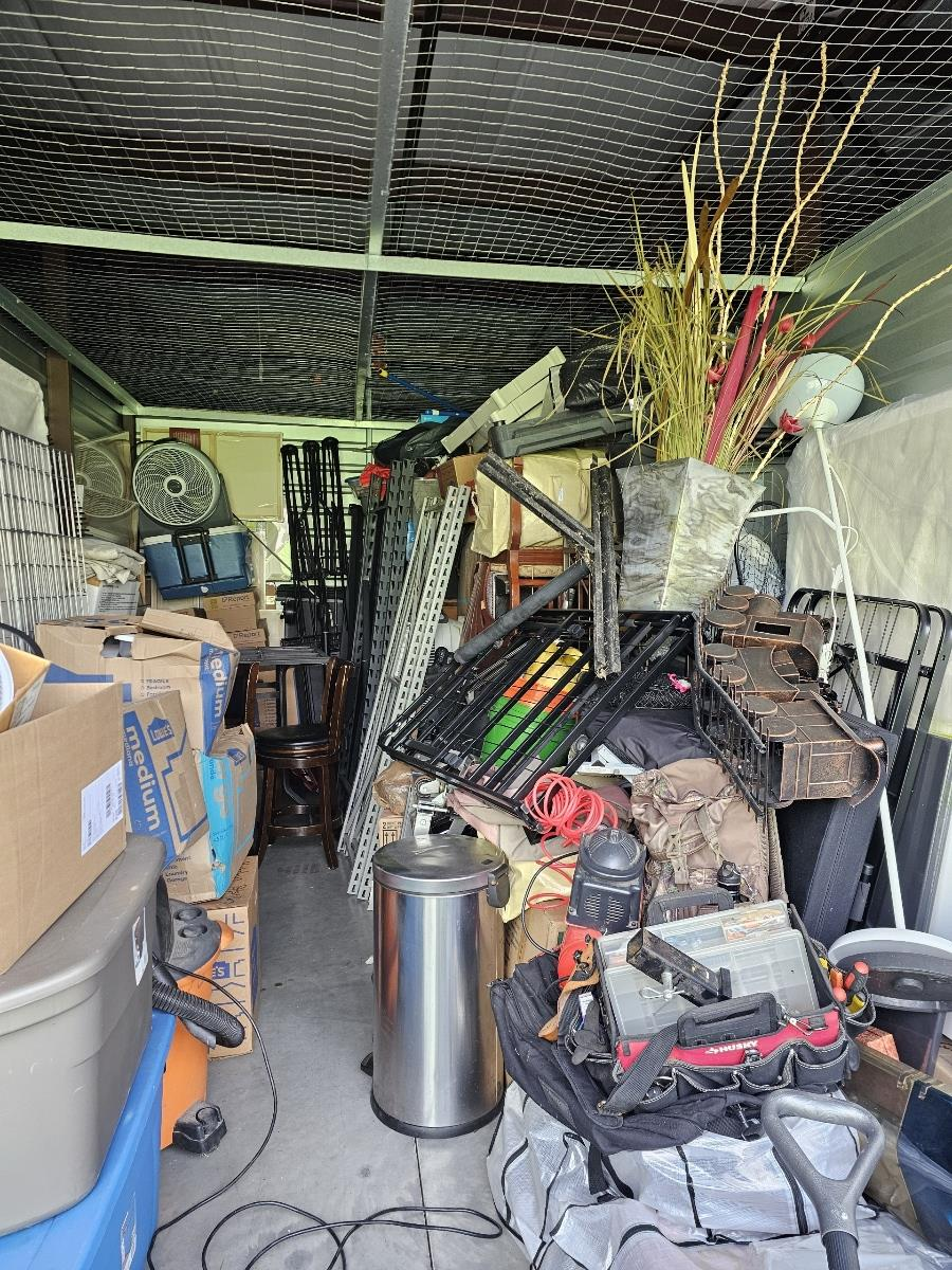 16 ft truck is most likely needed - a little over 1/2 of a 10 x 20 storage unit: household items. Items consist of mattresses( queen and full), platform bed frame, tables, desk, cedar chest, vanity, garage shelving units, paintings, art canvases, and boxes