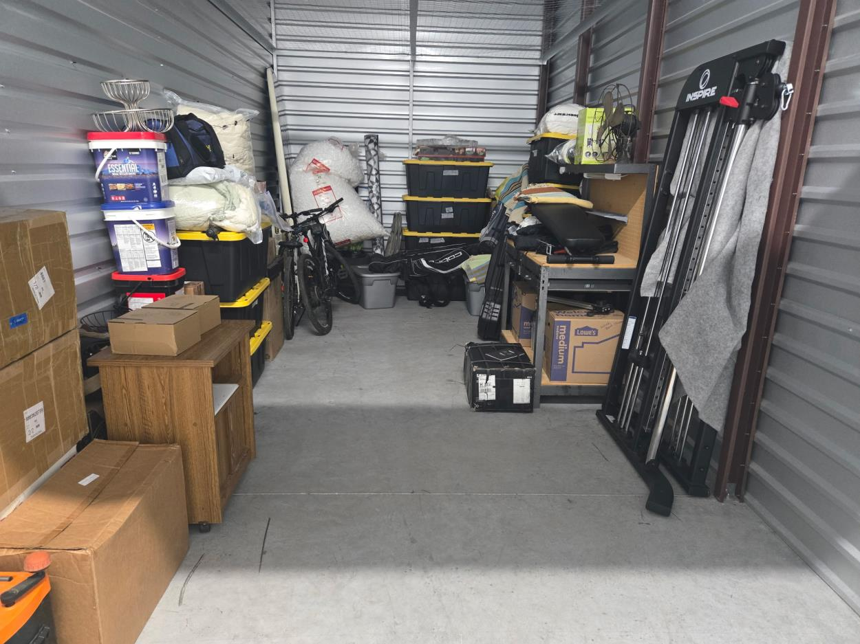 10x20 Storage unit almost 1/4 full, mostly empty. I moved everything in the unit with my 6x12 enclosed trailer. I will include photos this week. My wife and I unloaded everything from the trailer into the storage unit which is 3 spaces in from the door on the ground floor. It took us under an hour.