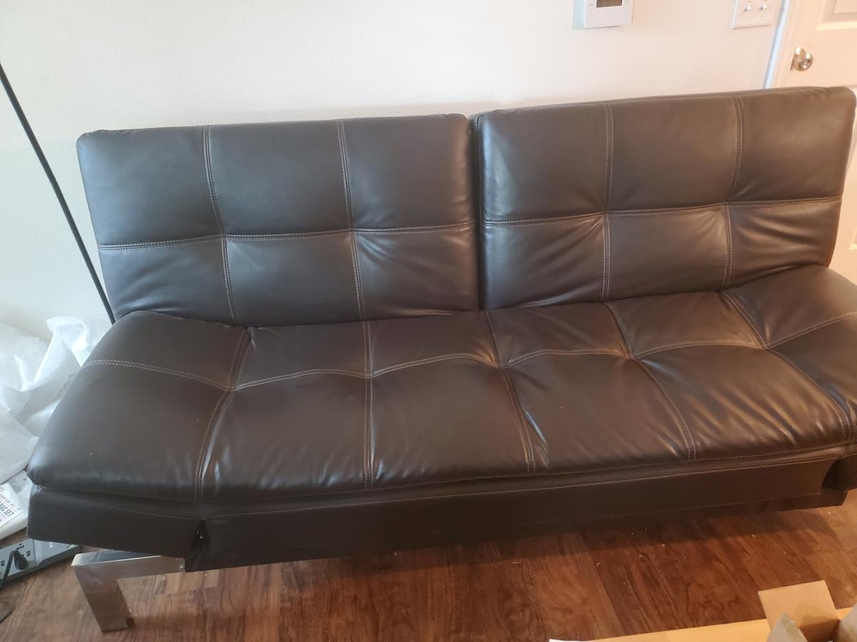 The leather sofa/bed folds back. It 78x47. The massage chair has backpack for scale. It is 22W x 38D x 37H. About 75-80 lbs. Seat and sides are made of soft material, so careful handling is required. Queen memory foam mattress, bunkboard, frame, no headboard, no box spring. It will be in a mattress bag with handles. Tool boxes will be going to a different storage unit. Top tool boxes can be moved separate and the bottom of both are on wheels. There will be some tools in the boxes but most heavy items will be removed. Also, a metal storage cabinet about 50 lbs, 55h x 21 w x 10d. Distance from apt to the first storage < 5 miles. From there to the second storage about 6 miles.
