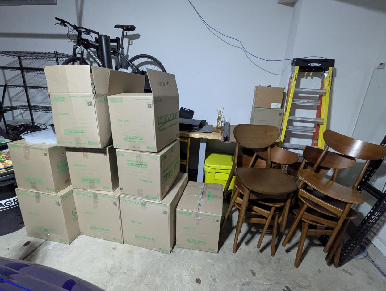 My father passed away so I'm needing to ship 5 of the yellow top totes, 1 trunk, 1 clear long tote, dinning room table plus two benches, and two end tables to California where I'm stationed with the Navy.