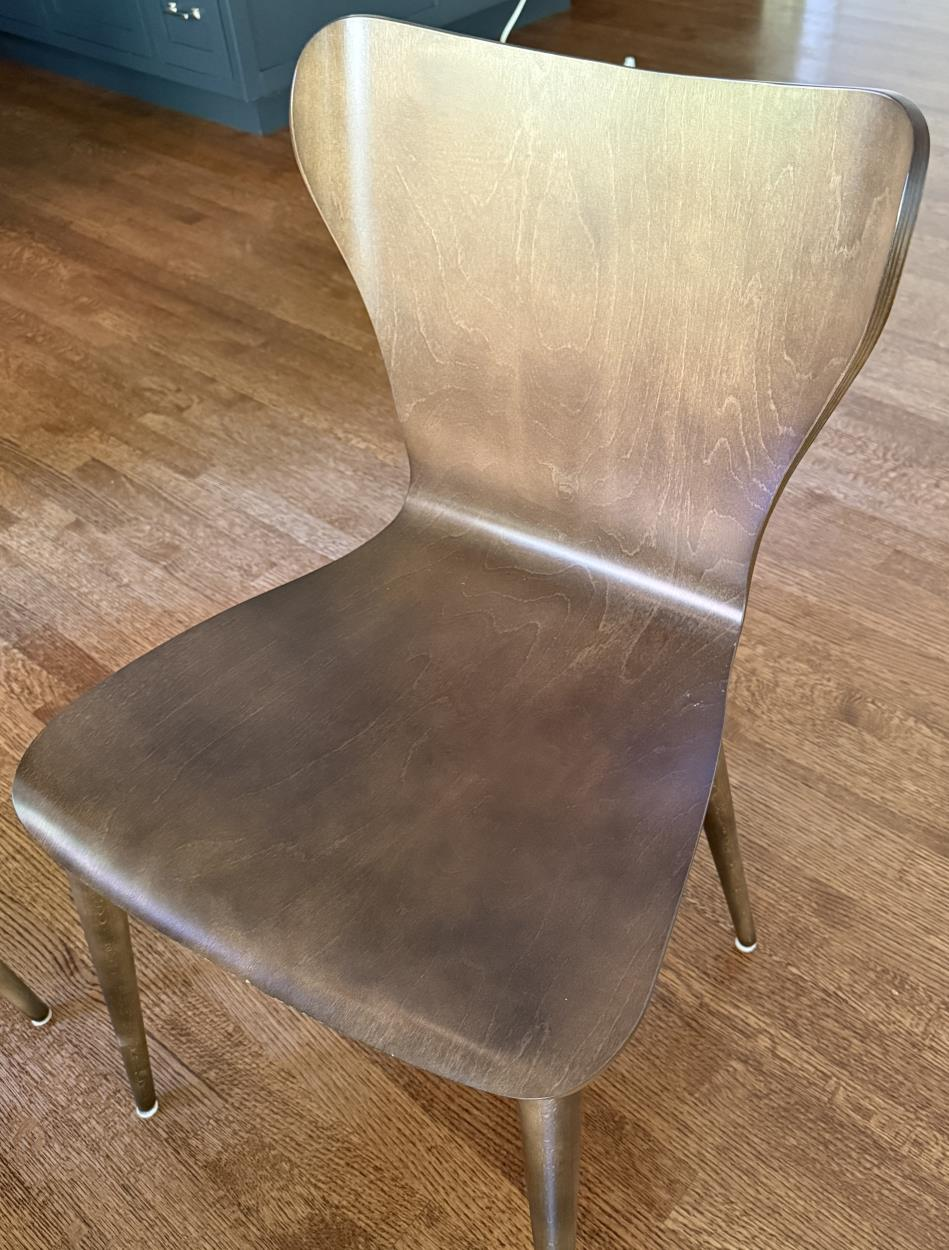 There are chairs, and taller armoire cabinets, and a dining room table.