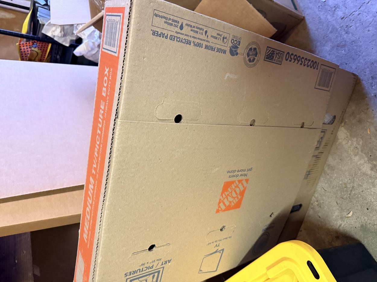 Flexible pickup and delivery, one box, two picture boxes (guitar & artwork), one heavy tote.