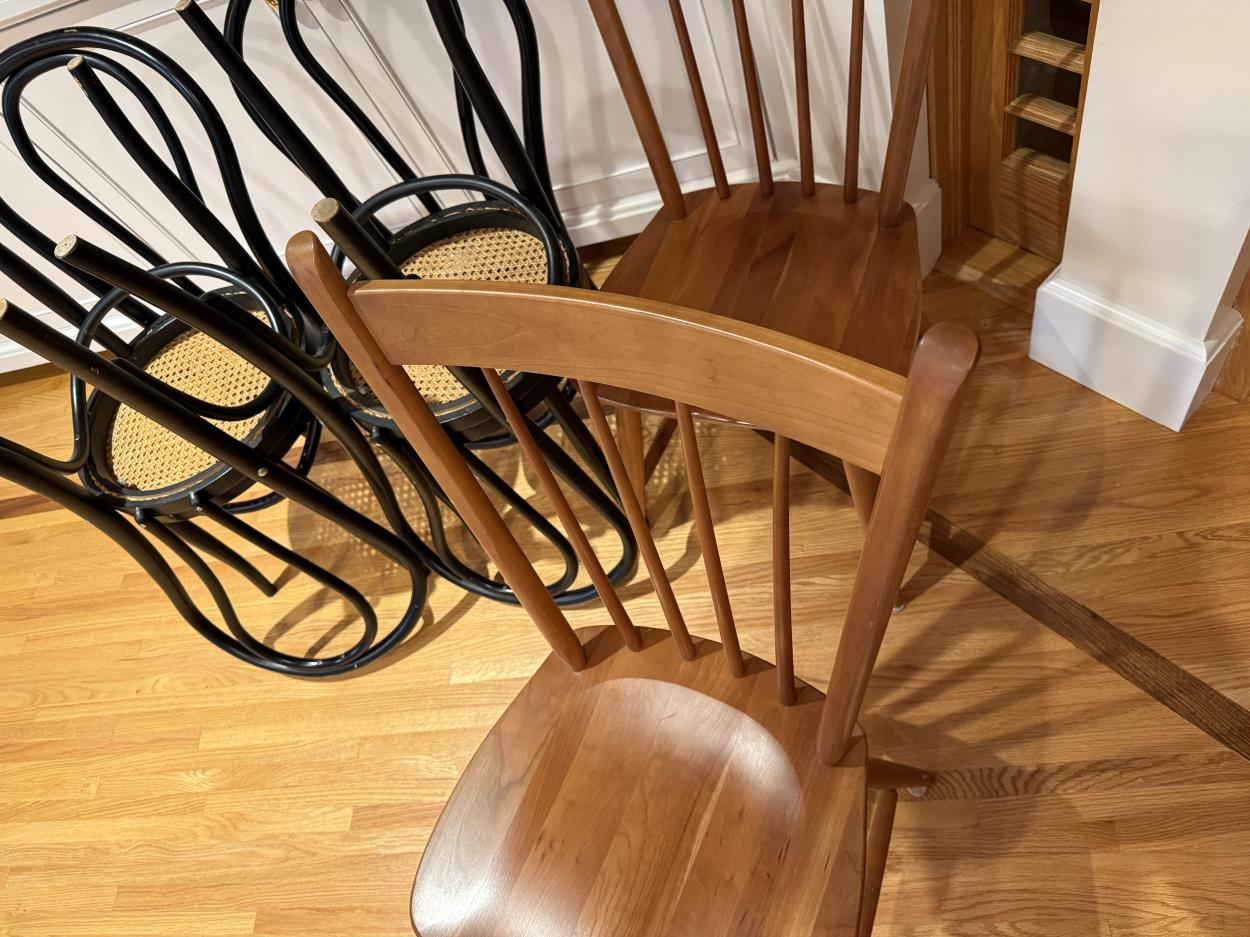 The trestle table comes apart. Will need an assist wrapping the chairs with moving blankets (moving blankets will be provided). Table will need to be disassembled and carried up a flight of stairs. All other items are on the first floor. There are three steps to get into the house.