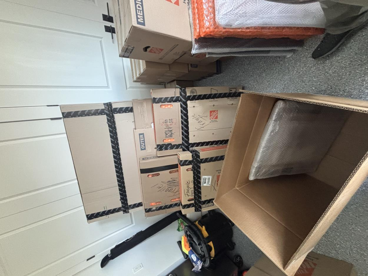 clothing boxed up.. 5 boxes.. possibly 1-2 more of kitchen stuff