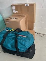 5 plastic crates (30x21x15inches); 1 tool box (10x10x25inches); 1 cardboard box (12x12x 35 inches); 2 smaller plastic crates (20x15x15inches)