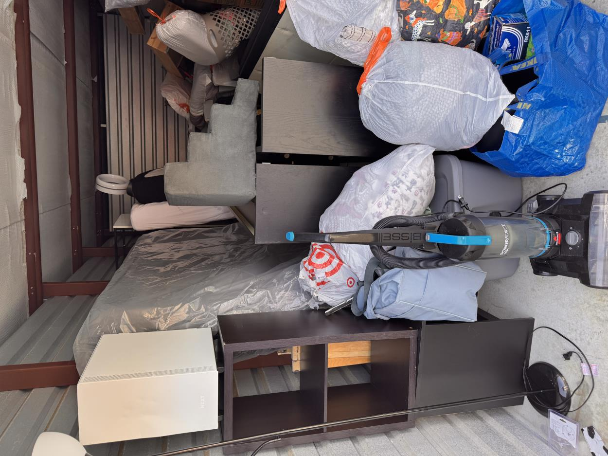 4 big bins, 5 medium sz bins, 1 queen mattress w/ metal frame, one stand, 65 inch tv, 43 inch tv,1 suitcase medium size, 1 large suitcase, and one flat tv stand. Bins and suitcase only have clothing and shoes. I will have 3 gentlemen at my home to help load the truck/ van.