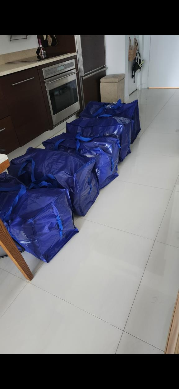 - 6 large moving bags (with clothes, books, and few kitchen items)