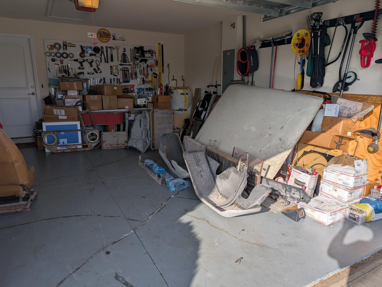 Less than 15 or 20 minutes to load everything up, less than 1/4 of garage: Car parts for old jeep project. All can be lifted by a person, no fork lift or hoist needed. NOTHING greasy, no chemicals or gas. Hood, Top, Doors, 2 Front Fenders, Seats, & boxes of car parts in the 1st pic on the table in front of the peg board and on the right side of the garage. I was going to rent the smallest U-haul truck (10 foot) & do it myself & would have lots of room left over in the truck but I had surgery & can't.