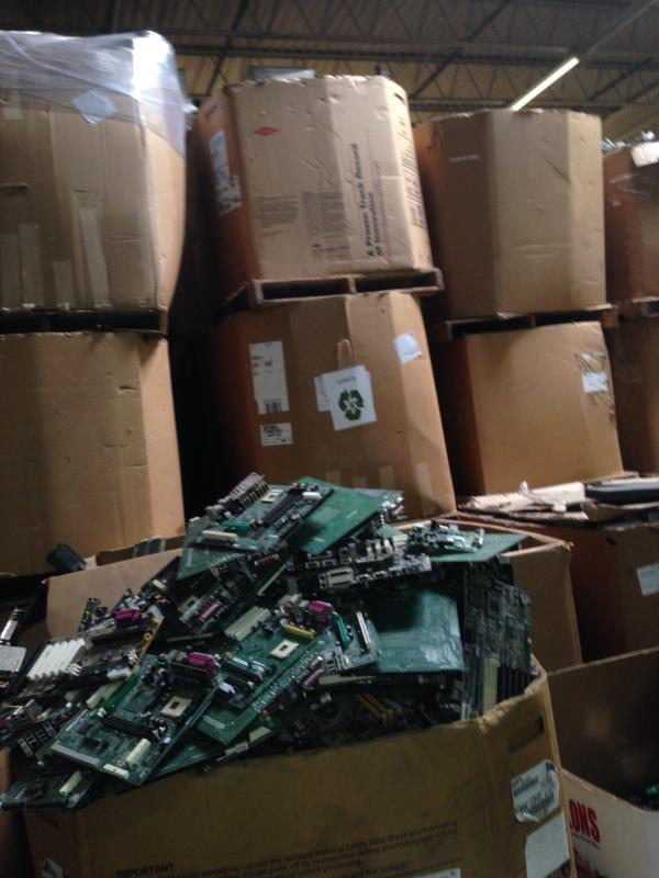 Approximately 30,000 pounds of electronic scrap motherboards in gaylord boxes. Each box may weight between 400 & 700 pounds. There will be about 25 to 30 boxes. Each box is 44 x 48 and 38 high. All loading and unloading will be done via loading dock and forklift
