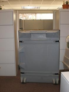 Each kiosk holds 2 computers (in the back and 2 screens in the front). Kiosks are separated from computers and screens. Kiosks are stackable if stored on the side.