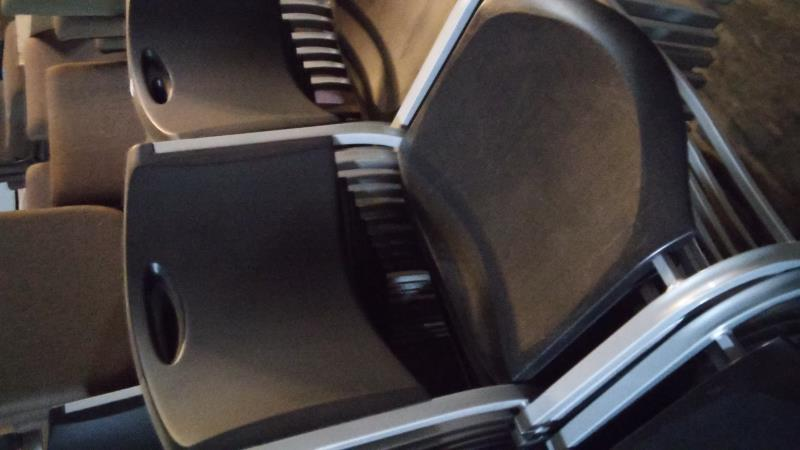 These are relatively high-end chairs that cannot be stacked. They roll but are not crated, boxed, etc. We will have the chairs in front of the office waiting on pickup.