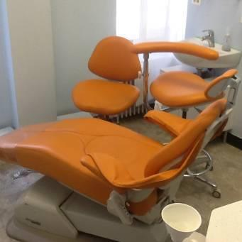 5 sets of orange dental chairs, dr and assistant chairs. One Panoramic xray machine. 5 dental carts, 5 track lights , 1 compressor, 1 vaccuum