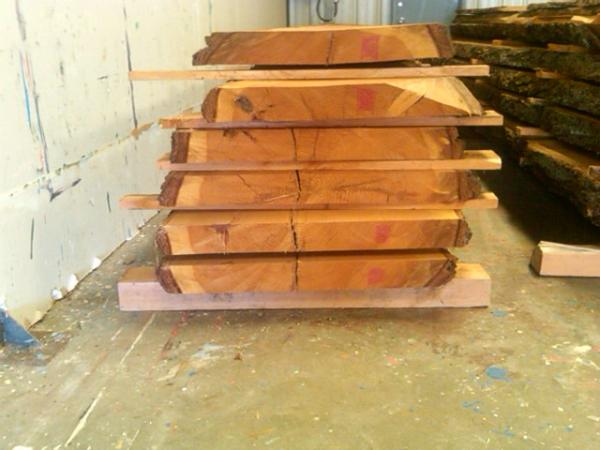 Note: The 8 slabs marked with red paint on the end grain are the slabs that will shipped. The weight was estimated using an average density of 30 lbs/cubic foot which is the density of Doug fir at 20% moisture content.