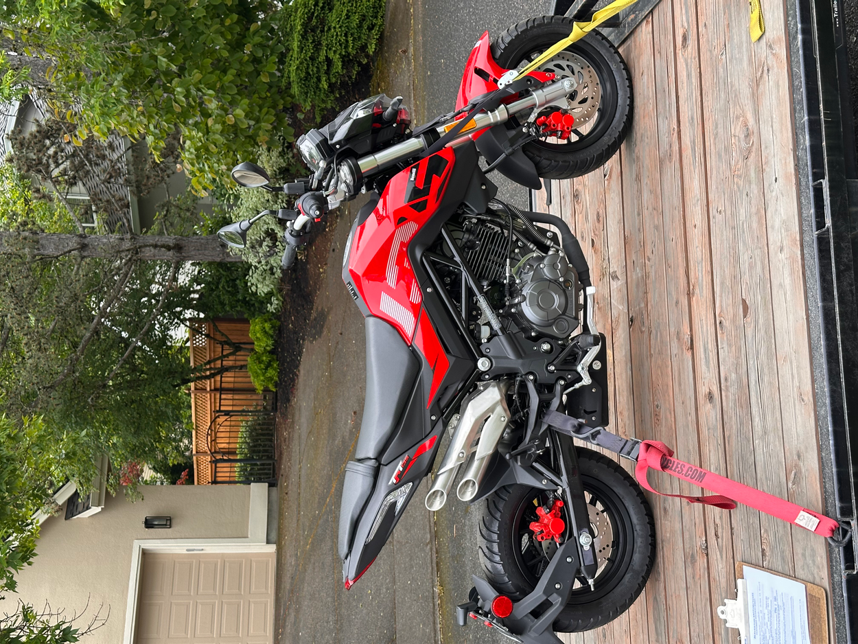 This is a kids dirt bike and the dry weight is 143 pounds. We will have someone available to help load and unload the bike.