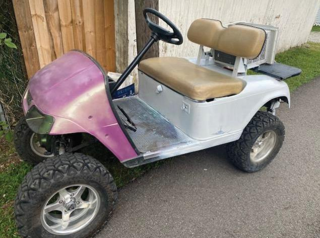 UNIT HAS NO KEYS, TIRES ARE FAIR, UNKNOWN IF RUNS/DRIVES OR ROLLS. SPECS: 2 PASSENGER GAS GOLF CART W/ NO CANOPY.