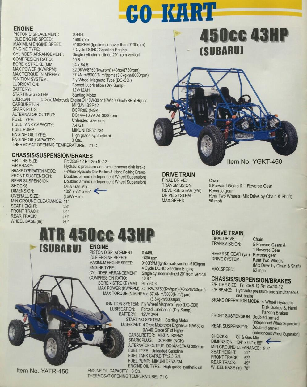 I am shipping two go karts. One is a single-seater 104" x 60" x 65" 800 lbs, the second is a double-seater 105" x 65" x 72" 900 lbs.