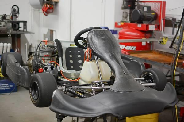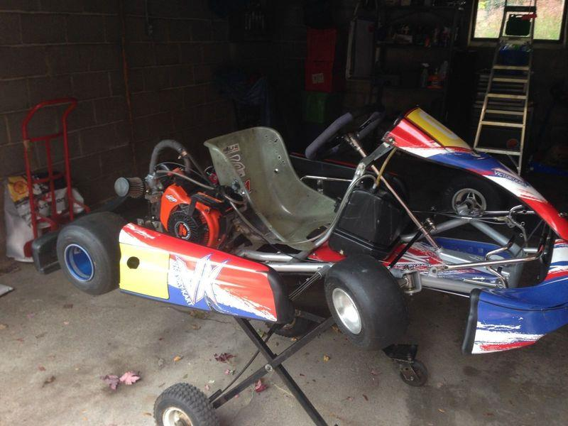 Kart, kart stand, and tires. kart can be vertically stored to save room.