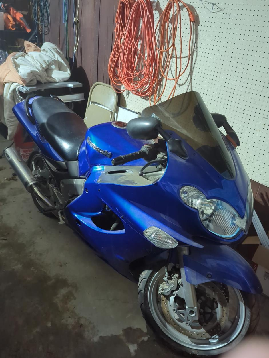 Its an all black 2024 Ninja 500 missing the muffler. It is at [address removed] and is parked by the [address removed] in a motorcycle/scooter only parking section. Its the only Ninja there