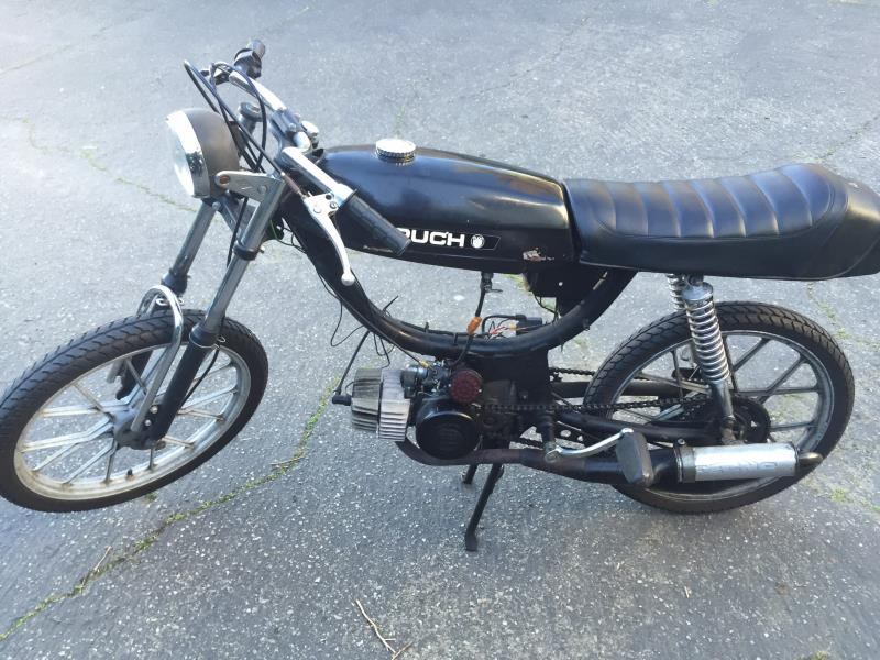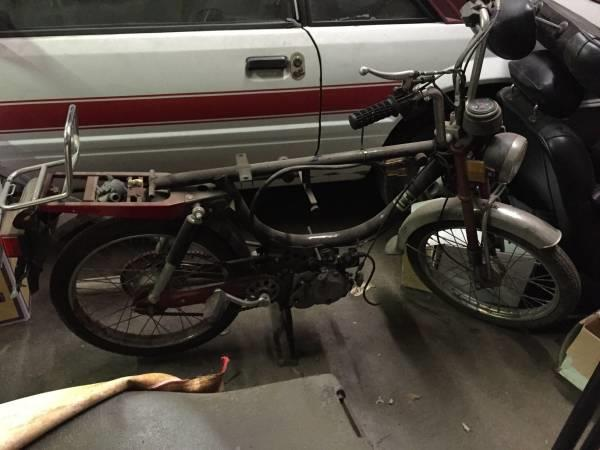 Puch Cobra moped (smaller than dirtbike/motorcycle but bigger than BMX bike - see photo for the specific model with 2 people present for scale). includes one small box or bag of parts. pickup this or next week - no huge rush on delivery.
