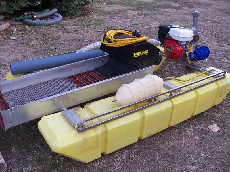 Dredge 'breaks down' into small pieces, 4 pontoons 4'x16"x12", sluice box 7'x 24" and a handful of smaller pieces.