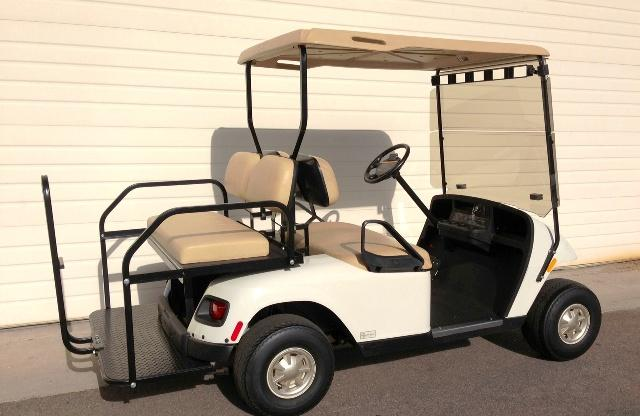 Golf cart runs, steers, and drives. Pick up location has a forklift if needed and drop off location has a fork lift and loading dock if needed.
