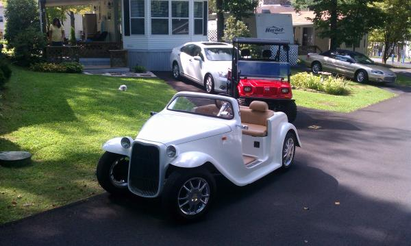 A custom golf cart . will be picked up from the shop and delivered to my home in RI.
