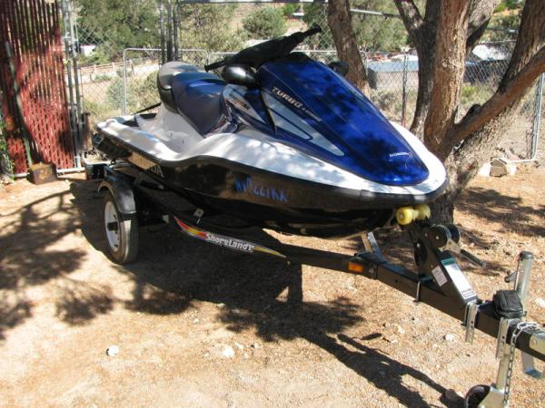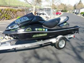 Typical 3 seater jet ski with a single trailer. Ski is 1000lbs, trailer is 250lbs. Trailer is 46" wide by 150" long.Tires are brand new but there is no spare tire. Item can be picked up at residence or at buisness. There is a forklift at the business address if need be for pickup. Item is to be delivered at a home residence or local marina if a forklift is needed to unload.