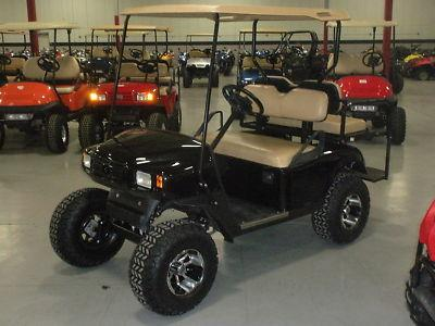 Electric EZ-GO golf cart with rear seat kit and canopy top.  Above dimensions are overall including top.