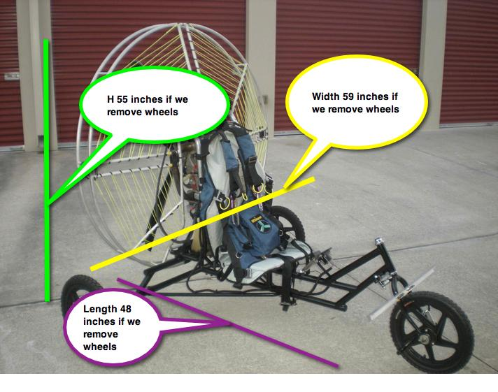 Also there are 3 boxes 30"x30"x30" (inches) which can easily fit within the space of the trike. See trike edited photo to better understand dimensions.