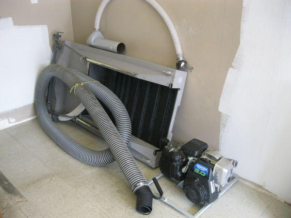 Small floating suction dredge, float is about 62"x36" with motor and hoses that might be stackable on top of float. Could be tied to a pallet.