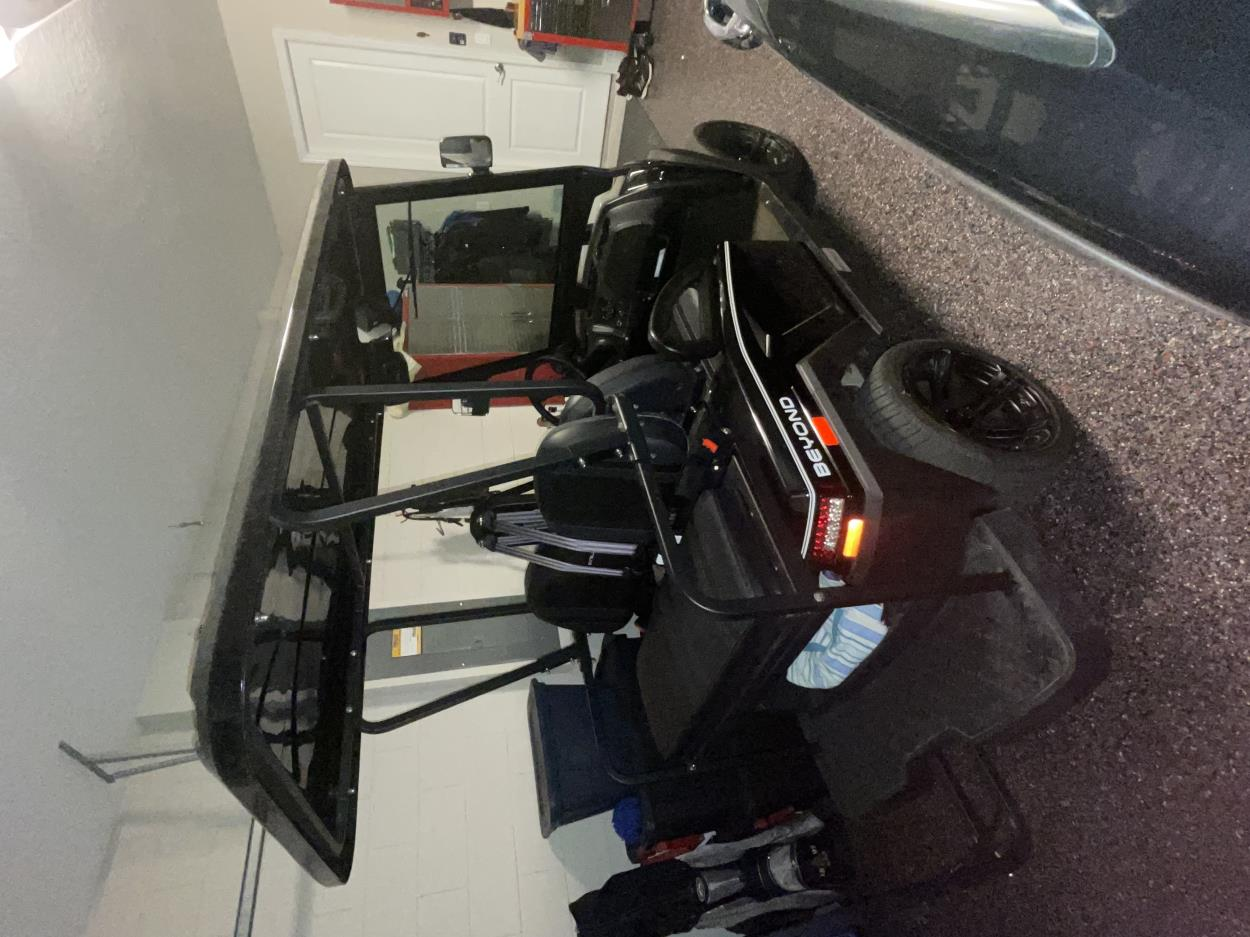 golf cart size is: 72in Tall, 38in wide, 92 or 80in long. Must be in a enclosed trailer