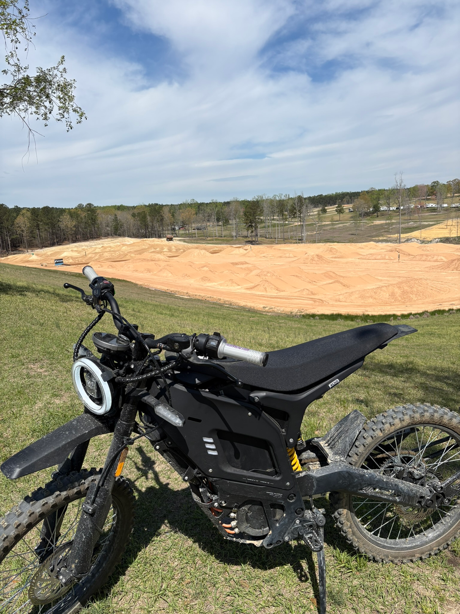 This motorcycle is on a military base.