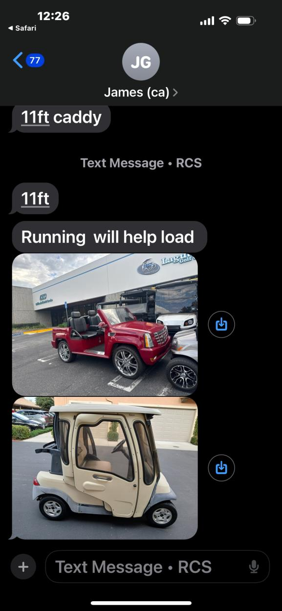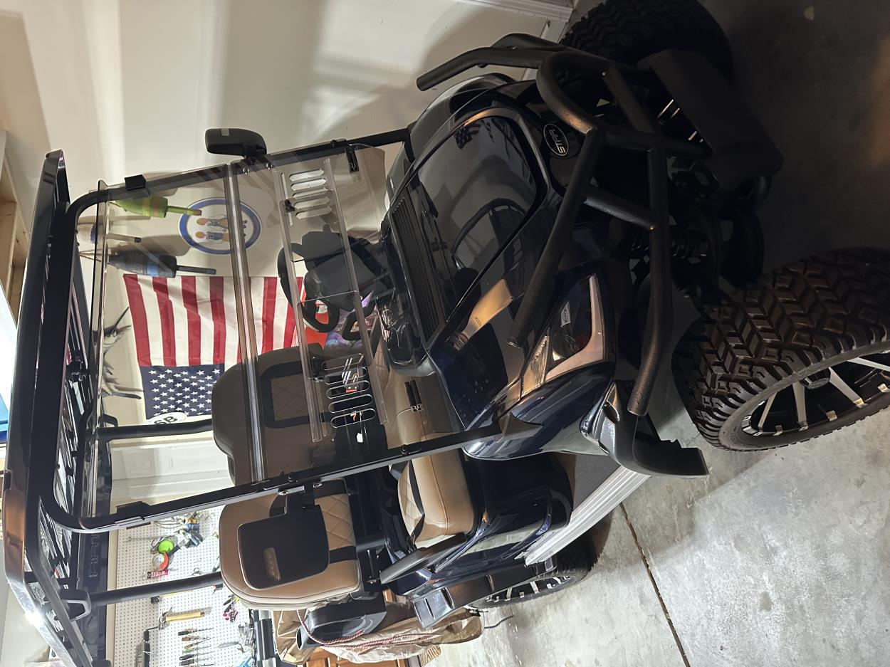 golf cart needs to be in an enclosed trailer or equivalent cart size is 72" tall,38" wide, 92" long or 72" long with rear step removed