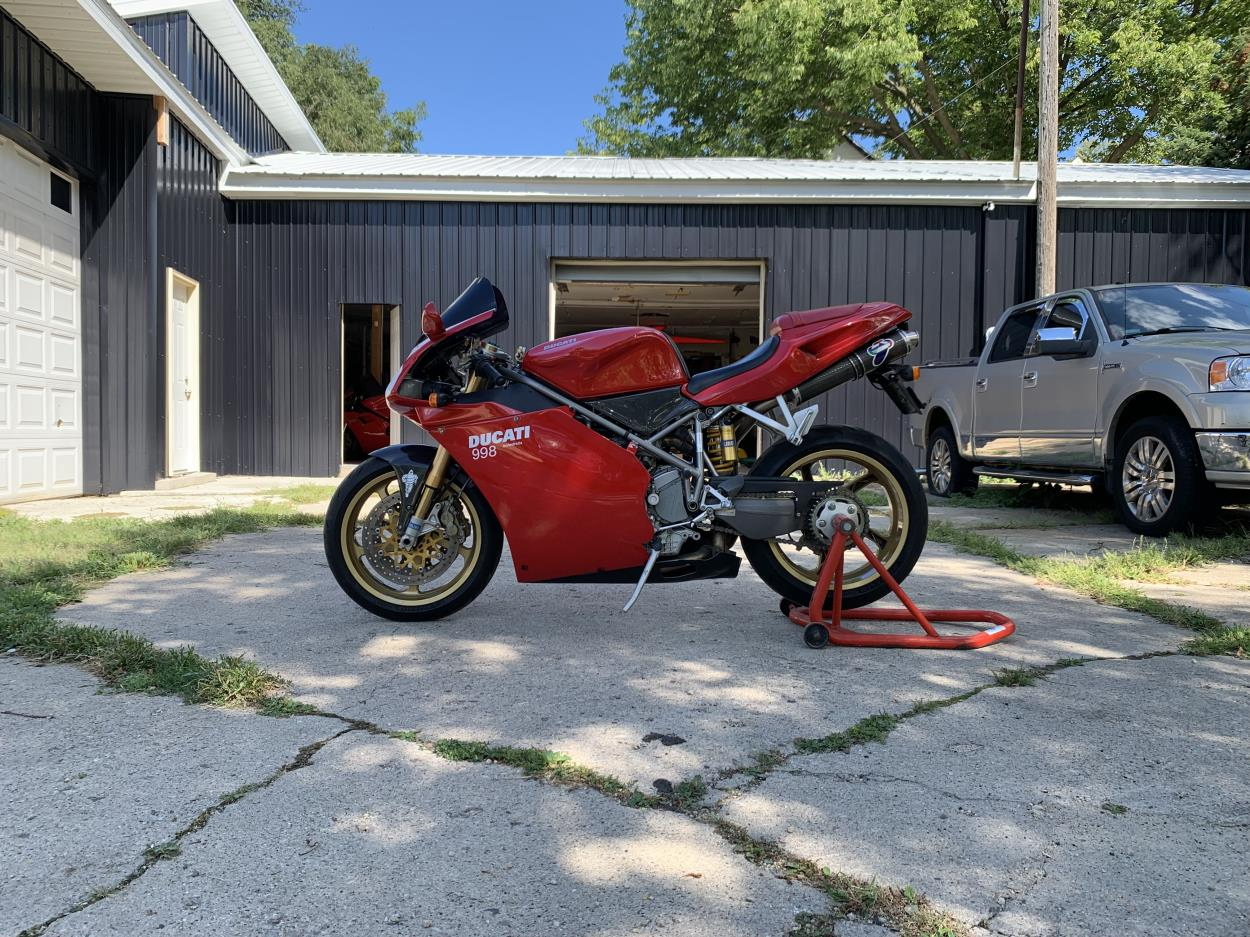 no kickstand, i can help unload with big ramp upon delivery. freshly painted fairings.