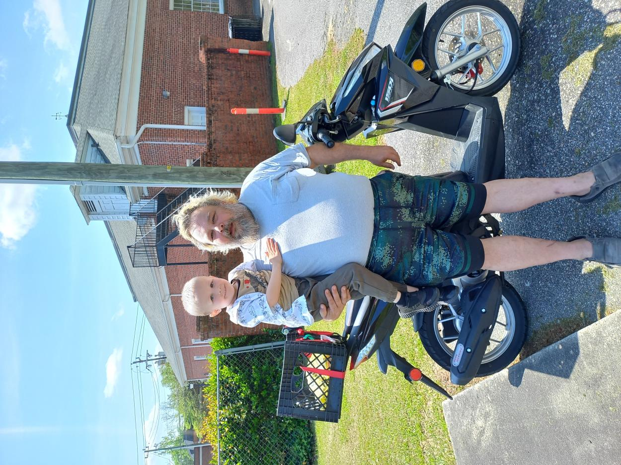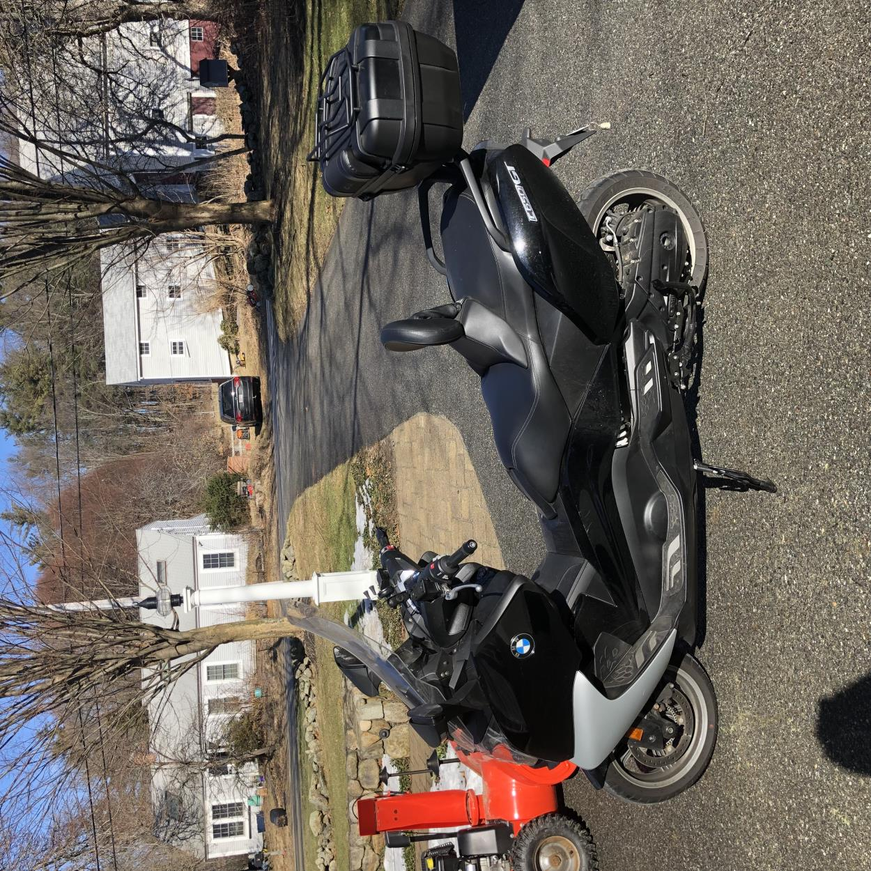 Small 390cc motorcycle, residential pickup and dropoff with easy street access.