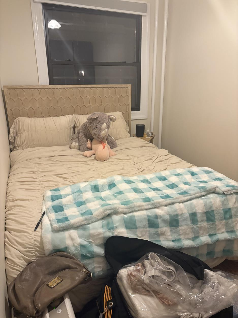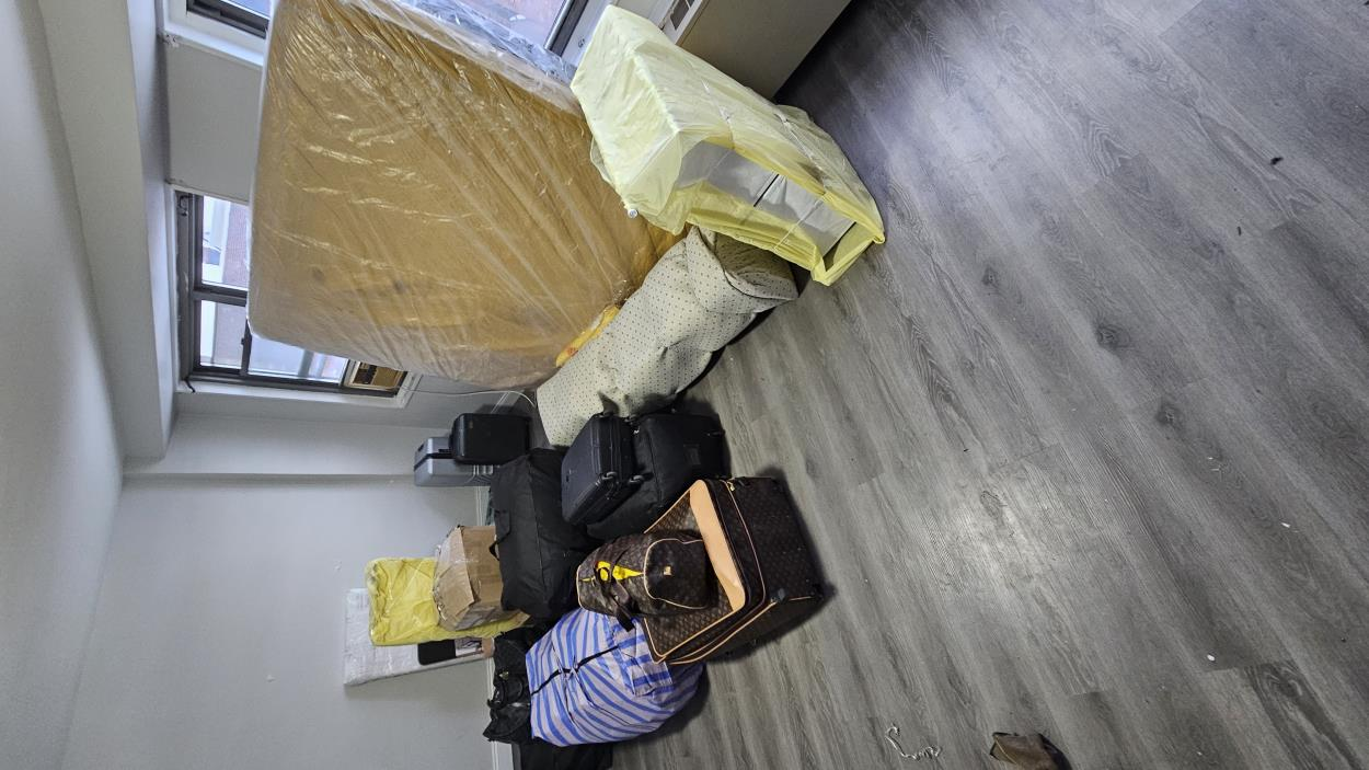 Couch, TV console, computer desk,computer chair, dresser and clothes in apt.