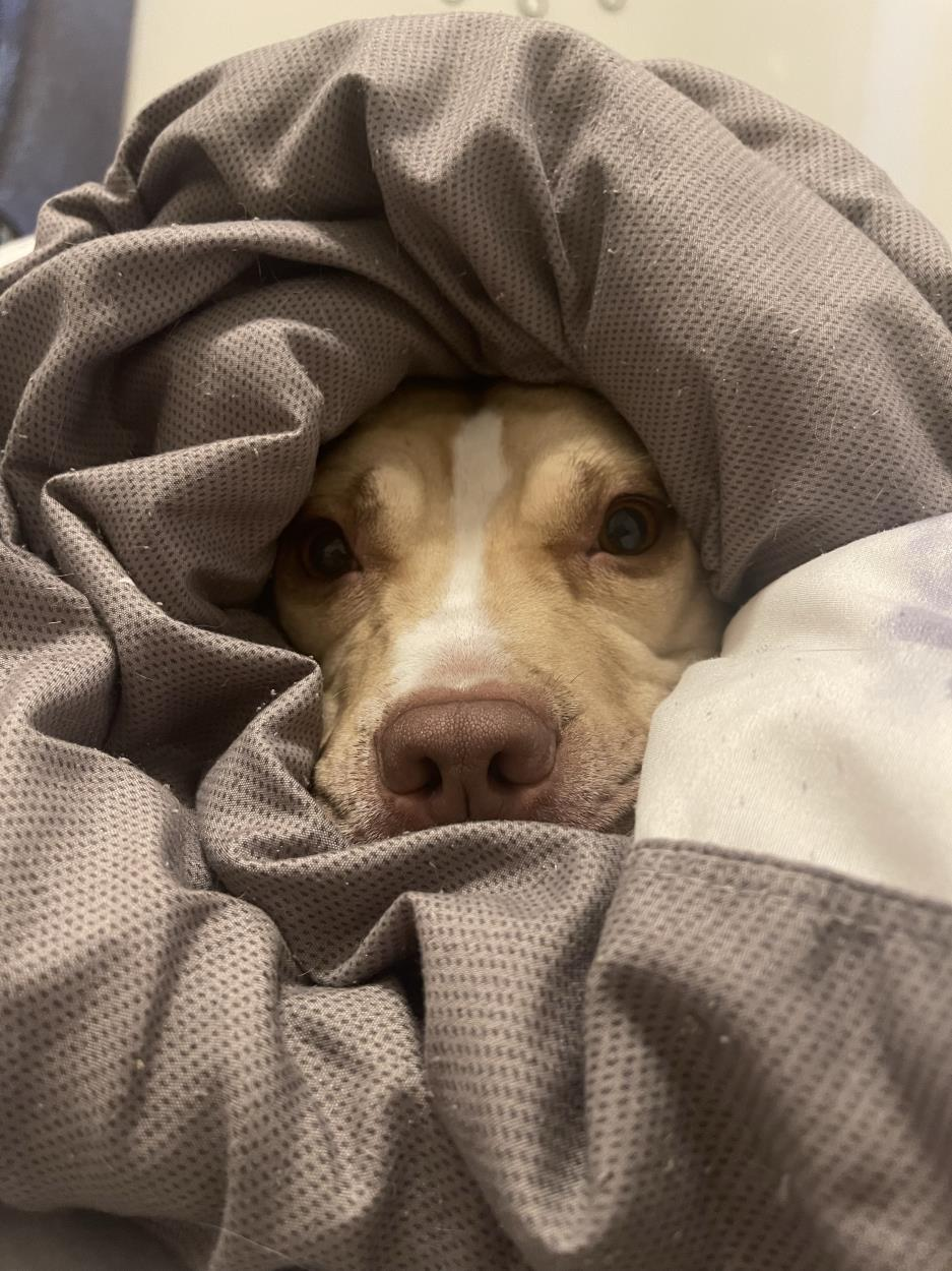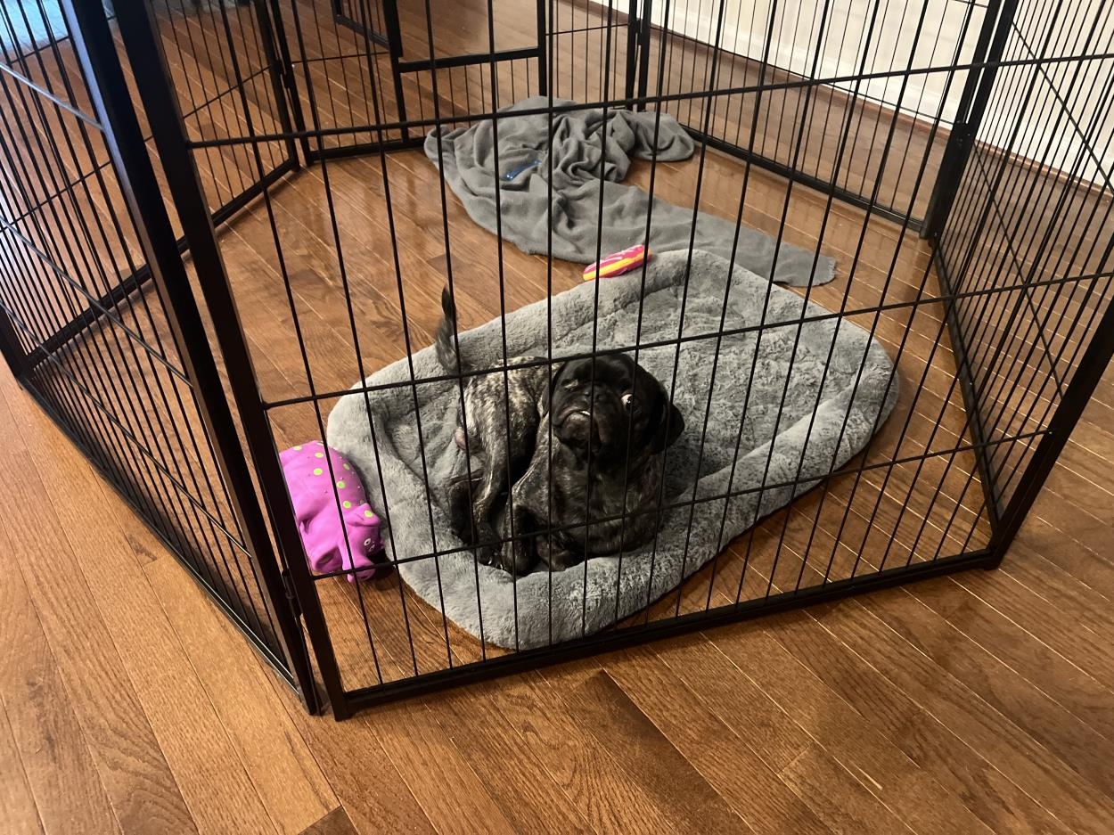 This is Katana, a 7 year old pit bull (but I call her my petite-bull since she’s only about 38lbs. Shes super friendly and loves pets. Shes also amazing in the car ! As long as she has her bed she will lay down the whole car ride. She’s ok with other animals aka she’s not a huge player but just doesn’t pay them any mind. I’m a newly aingle mom of a 2 year old otherwise I would transport her myself . She will be staying with my parents in Florida while I get my footing. Any time between now and mid June works perfect.
