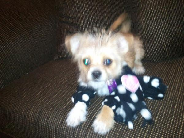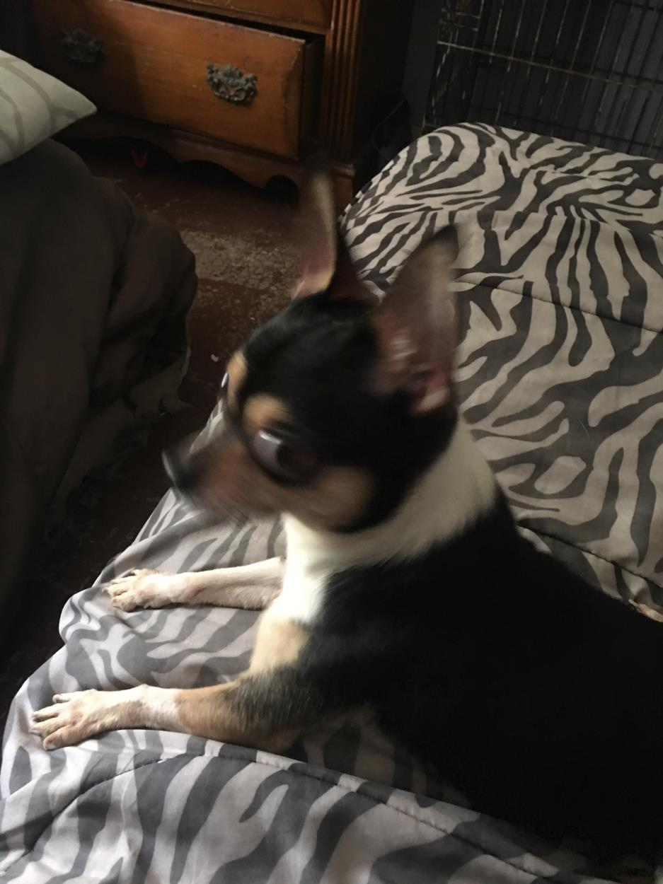 Toots is a rescue, shes timid with males but will earn trust fairly easy with treats and snuggles.